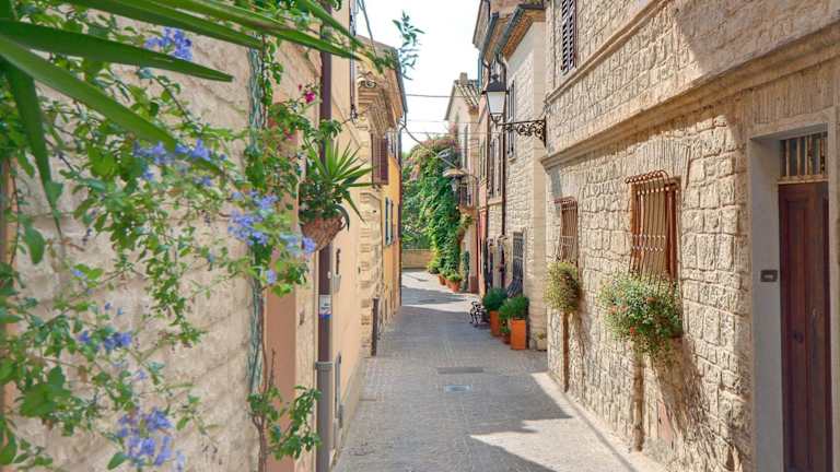 Das Il Vicolo Relais befindet sich im charmanten Dorf Sirolo, eingebettet im Naturpark Conero. Der nächste Strand ist nur 10 Gehminuten entfernt, was die Lage ideal für Ferien am Meer macht.