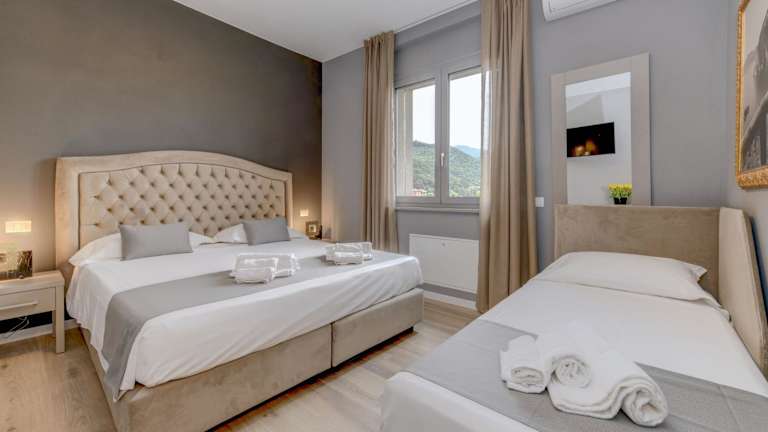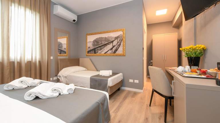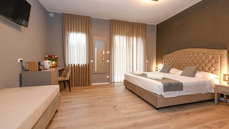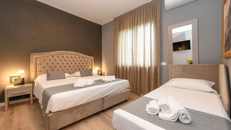 Die klimatisierten Zimmer sind mit einem Schreibtisch, einem Safe, einem Flachbild-TV, einem Balkon sowie einem eigenen Badezimmer mit Bidet ausgestattet. Zur weiteren Ausstattung gehören Bettwäsche und Handtücher.
