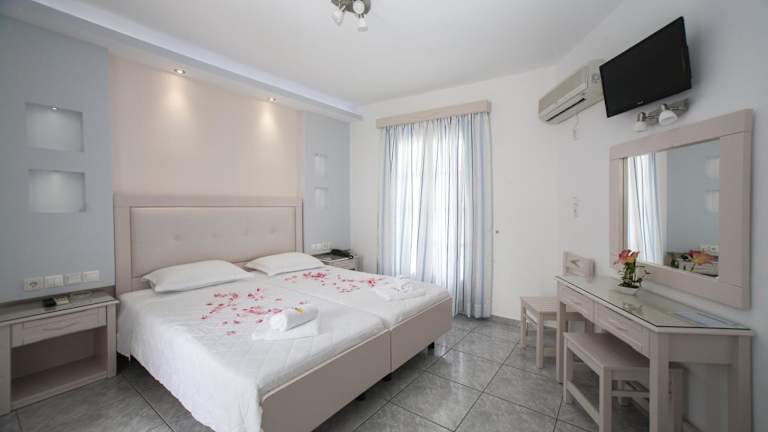 Das Ilion Hotel geniesst eine ruhige Lage, nur 10 m vom Strand Agios Georgios entfernt. Das Zentrum der Stadt ist in einem kurzen Spaziergang erreichbar. Die Umgebung bietet zahlreiche Möglichkeiten, Naxos zu erkunden.