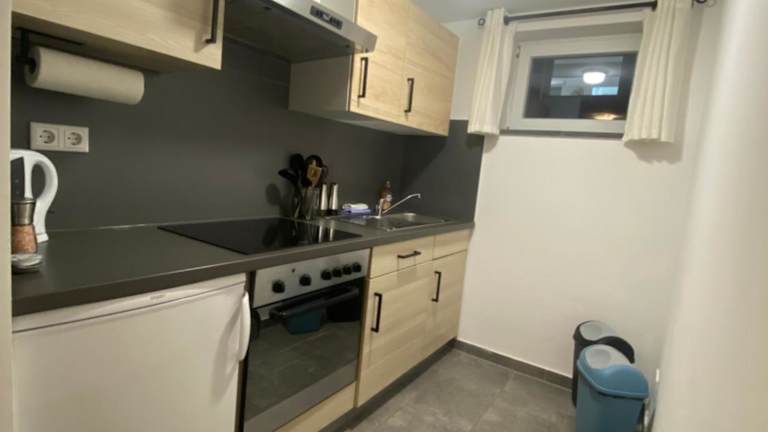 Die Küche der Unterkunft ist ausgestattet mit einem Kühlschrank, einem Ofen, einer Herdplatte, einem Toaster, einer Kaffeemaschine sowie einem Wasserkocher, was die Zubereitung von Mahlzeiten erleichtert.