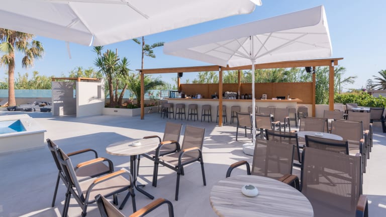 Das Hotel bietet ein Fitnesscenter und einen saisonalen Aussenpool. Es gibt zudem Möglichkeiten zur Erholung im Garten und auf der Terrasse. Für sportliche Aktivitäten in der Umgebung sind die Strände Pirgos, Adelianos Kampos und Sfakaki in der Nähe.
