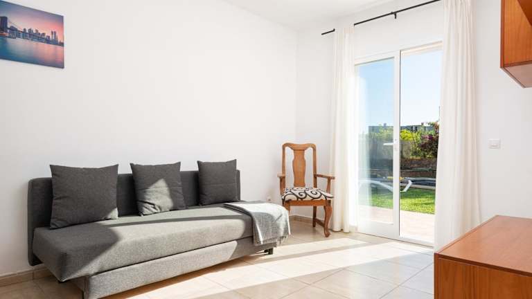 Die Villa besteht aus drei Schlafzimmern, einem heimeligen Wohnzimmer sowie einer voll ausgestatteten Küche, die mit einem Kühlschrank und einer Kaffeemaschine ausgestattet ist. Es sind drei Badezimmer vorhanden, die jeweils mit Badewanne und Haartrockner ausgestattet sind. Handtücher und Bettwäsche werden zur Verfügung gestellt. Die Villa ist klimatisiert und bietet einen Whirlpool für zusätzlichen Genuss.