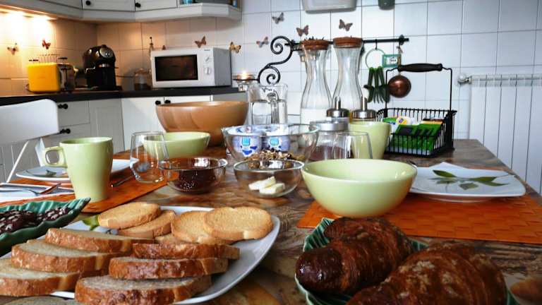 In Giardino B&B bietet ein italienisches Frühstück, das als Buffet serviert wird. Zudem stehen Gartenmöbel für ein Picknick bereit.