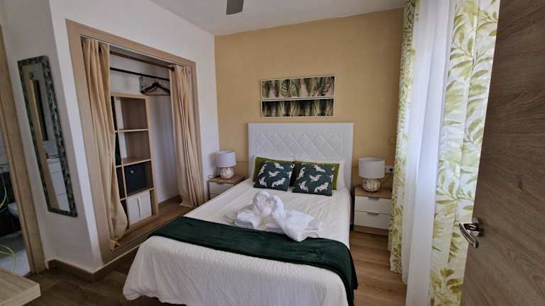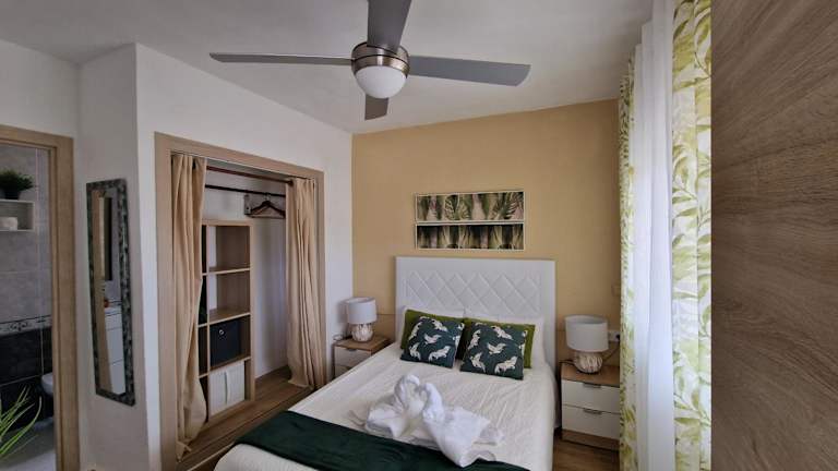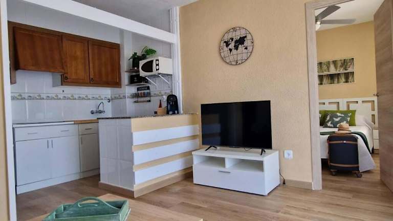 Die Ferienwohnung mit Klimaanlage besteht aus 1 Schlafzimmer, einem Wohnzimmer und einer voll ausgestatteten Küche, die mit einem Kühlschrank und einer Kaffeemaschine ausgestattet ist. Das Badezimmer verfügt über ein Bidet und eine Dusche. Handtücher und Bettwäsche werden bereitgestellt.