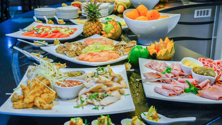 Der gastronomische Bereich umfasst ein Restaurant und eine Bar, wo ein reichhaltiges Frühstücksbuffet sowie Mittag- und Abendessen serviert werden. Besondere Diätgerichte und Kindermenüs sind auf Wunsch erhältlich.