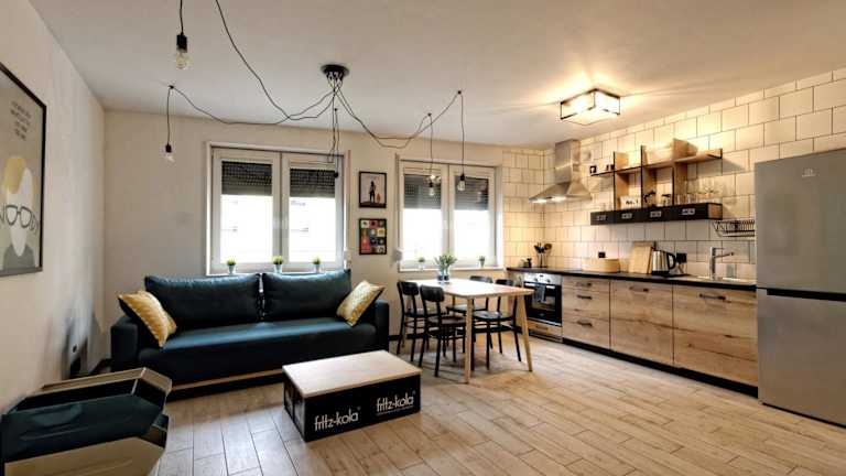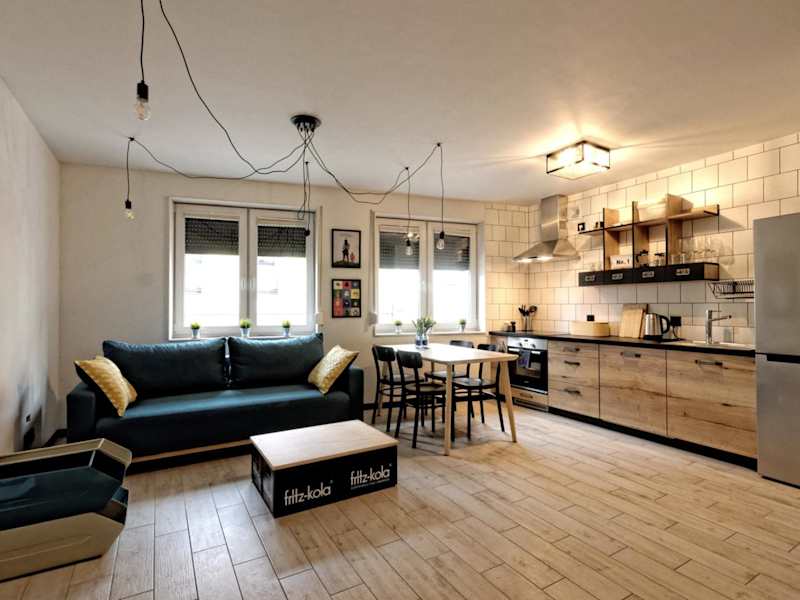 Industrialny Kwadrat ist eine moderne Ferienwohnung, welche von einem privaten Gastgeber geführt wird. Die Unterkunft umfasst ein Wohnzimmer mit einem Flachbild-TV und Kabelkanälen sowie eine voll ausgestattete Küche. Die Atmosphäre ist durch die Nichtraucher-Politik in allen Bereichen heimelig und einladend. Feiern wie Junggesellenabschiede sind in dieser Unterkunft nicht erlaubt.