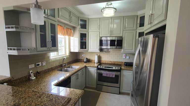 Die Ferienwohnung verfügt über 3 Schlafzimmer, einen Flachbild-TV mit Kabelkanälen, eine gut ausgestattete Küche mit Kühlschrank und Geschirrspüler sowie 3 Badezimmer mit Whirlpools.