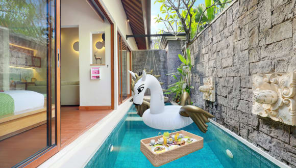 Die Ini Vie Villa befindet sich in Legian, nur 1,4 km vom Legian Beach entfernt. In der Umgebung laden beliebte Ausflugsziele wie der Kunstmarkt in Legian (1,1 km) und der Strand Double Six (2,1 km) zur Erkundung ein. Ein kostenfreier Shuttleservice zum internationalen Flughafen Bali Denpasar (5 km entfernt) wird angeboten. Die Lage eignet sich hervorragend für Gäste, die die Region mit dem Velo oder zu Fuss erkunden möchten.