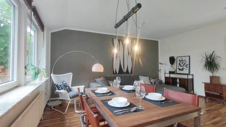 Die Ferienwohnung besteht aus 2 Schlafzimmern, einem Wohnzimmer, einer voll ausgestatteten Küche sowie einem Badezimmer mit Dusche. Handtücher und Bettwäsche werden bereitgestellt.
