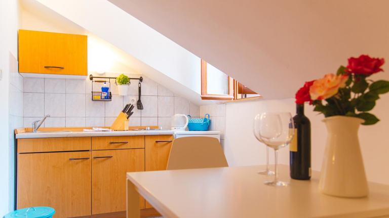 Die Zimmer und Apartments sind modern ausgestattet und verfügen über ein geräumiges Bad sowie Sat-TV. Aus den Fenstern blicken die Gäste auf die historische Altstadt von Omiš.