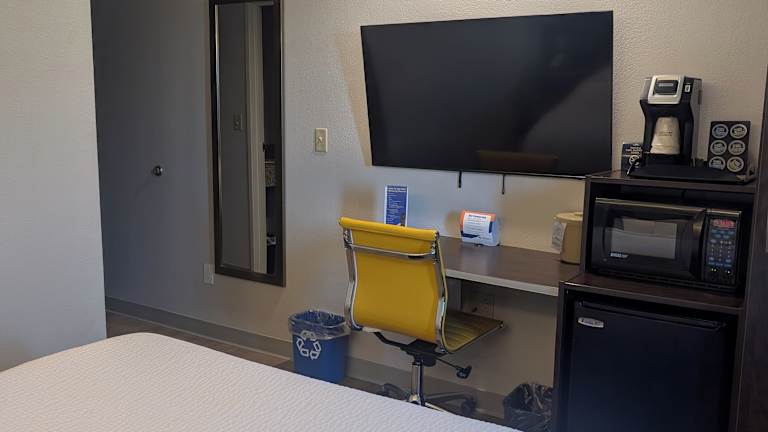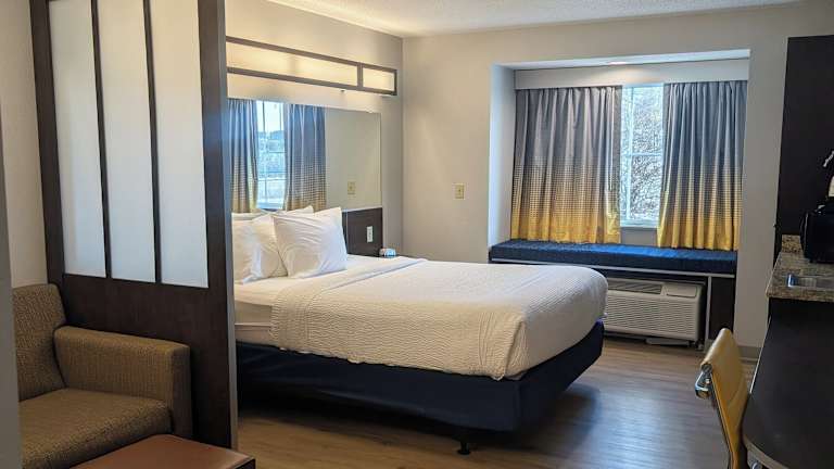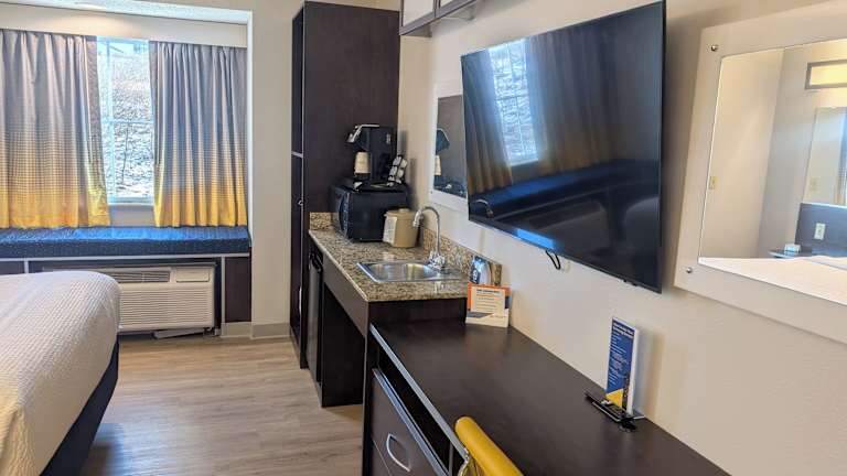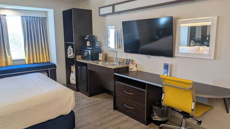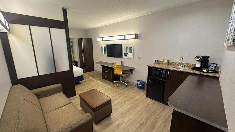 Die Zimmer sind klimatisiert und verfügen über ein Queensize-Bett sowie eine Kochnische mit Kühlschrank und Mikrowelle. Zu den Annehmlichkeiten zählen ein Safe, ein Schreibtisch, ein Fernseher mit Satelliten-/Kabelempfang und kostenloses Wifi. Das Badezimmer ist mit einer Dusche und Kosmetikartikeln ausgestattet. Zusätzlich stehen rollstuhlgerechte Zimmer zur Verfügung. Familien- und Nichtraucherzimmer sind ebenfalls vorhanden.