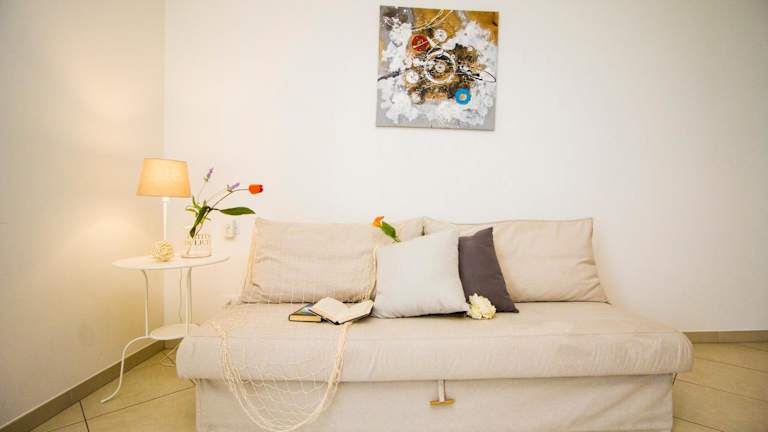 Das Ferienhaus besteht aus 1 Schlafzimmer, einem Wohnzimmer und einer voll ausgestatteten Küche mit Kühlschrank und Kaffeemaschine. Es gibt ein Badezimmer mit Bidet und Dusche. Handtücher und Bettwäsche werden bereitgestellt. Die Unterkunft ist eine Nichtraucherunterkunft.