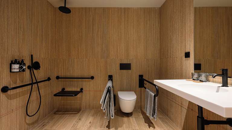Die Zimmer sind modern ausgestattet und verfügen über einen Balkon oder eine Terrasse. Zu den Annehmlichkeiten zählen ein Doppelbett, ein Queensize-Bett oder ein Sofabett sowie eine Minibar und ein Schreibtisch. Eine Tee-/Kaffeemaschine sowie ein Flachbildschirmfernseher sind ebenfalls vorhanden. Die Badezimmer sind mit einer Dusche ausgestattet und bieten Bademäntel sowie Hausschuhe. Es sind Nichtraucherzimmer verfügbar.