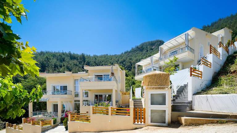 Die INROY SEAVIEW APARTMENTS befinden sich in der Nähe des berühmten Golden Beach in Skala Potamias in der Region Thrakien. Die Umgebung bietet eine malerische Kulisse mit Blick auf die Berge und das Meer. Die Hafenstadt Thassos ist nur 13 km entfernt, die interessante Museumsstätte Polygnotou Vagi liegt 2,9 km weit. Der nächstgelegene Flughafen ist der Flughafen Kavala, der sich 34 km von der Unterkunft entfernt befindet.