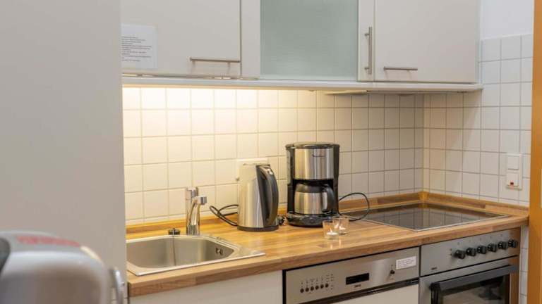 Die Wohnung ist eingerichtet mit einem Schlafzimmer, einer Küchenzeile, die mit einem Kühlschrank und einem Geschirrspüler ausgestattet ist, sowie einem Badezimmer, welches mit einer Badewanne, Haartrockner und Waschmaschine ausgestattet ist. Ein TV mit Kabelkanälen und ein DVD-Player sorgen für zusätzliche Unterhaltung.