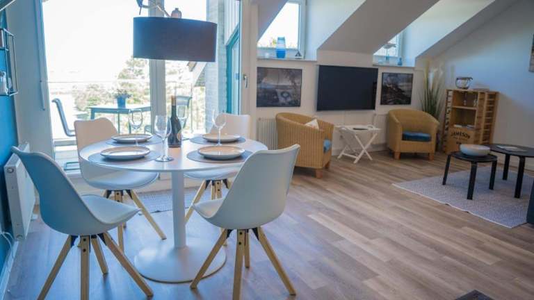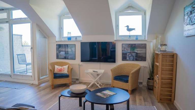 Inselblume 78 - Ferienwohnung mit Strandkorb in Burgtiefe bietet eine direkte Strandlage und einen heimeligen Balkon. Die Unterkunft hat einen Aussenpool, der zur Entspannung einlädt, und einen Kinderspielplatz für die kleinen Gäste. Es handelt sich um eine Nichtraucherunterkunft, die sich sowohl für Familien als auch für Einzelgäste eignet.