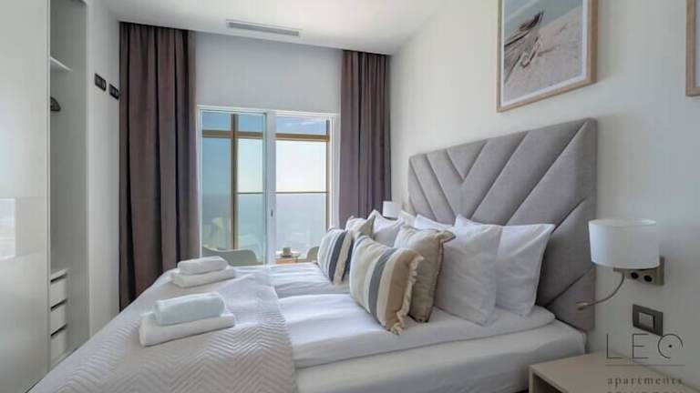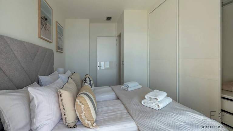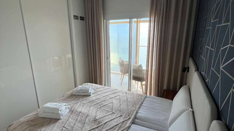 Die Ferienwohnung ist mit zwei Schlafzimmern und zwei Badezimmern ausgestattet. Sie verfügt über Bettwäsche, Handtücher, einen Flachbild-TV, einen Essbereich, eine voll ausgestattete Küche und eine Terrasse mit Meerblick.