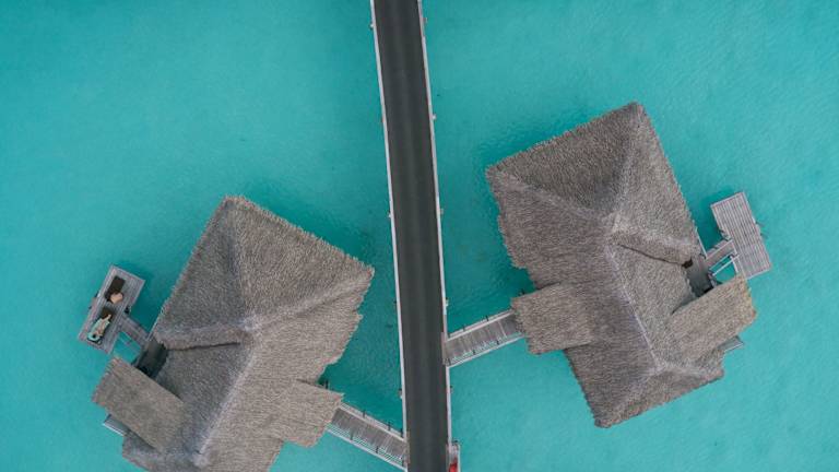 Die Unterkünfte bestehen aus Overwater Villen mit verschiedenen Aussichtsmöglichkeiten (Meer-, Lagunen- und Bergblick). Jedes Zimmer verfügt über Annehmlichkeiten wie Klimaanlage, Minibar, Balkon und WLAN. Die Villen bieten ein Schlafzimmer, ein Wohnzimmer und eine großzügige Terrasse mit direkten Zugang zur Lagune.