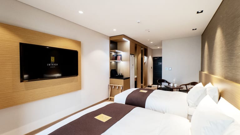 Die Gästezimmer im Intrada Icheon Hotel sind mit Klimaanlage, Flachbild-TV mit Kabelkanälen, Kühlschrank, Wasserkocher, Bidet, Haartrockner und Kleiderschrank ausgestattet. Jedes Zimmer verfügt über frische Bettwäsche und Handtücher. Der Hochgeschwindigkeits-Internetzugang über Wifi ist in allen Zimmern verfügbar.