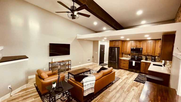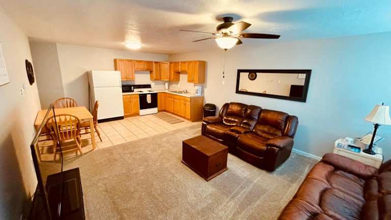 Die Unterkunft bietet ein Zimmer mit einem Flachbild-TV und einer voll ausgestatteten Küche, die über einen Kühlschrank, einen Ofen, eine Mikrowelle, eine Herdplatte, einen Toaster und eine Kaffeemaschine verfügt. Zudem gibt es ein eigenes Badezimmer mit einer Dusche und einem Haartrockner.