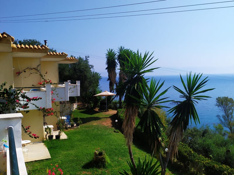 Am Berg gelegen mit traumhaftem Meerblick, 16 km von Korfu stadt und Flughafen, 1,5 km von Moraitika, 500 Meter zum strand von agios ioannis,