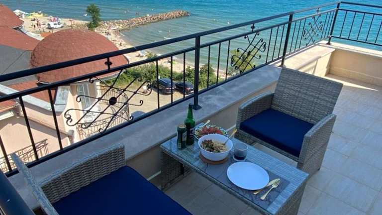 Die Unterkunft befindet sich in unmittelbarer Nähe zum Zentralstrand Sweti Wlas und bietet Stadtblick. Die Altstadt von Nessebar ist 11 km entfernt, während der Wasserpark Action AquaPark in einer Entfernung von 5,5 km liegt. Der nächstgelegene Flughafen, Burgas, befindet sich 34 km von der Unterkunft.