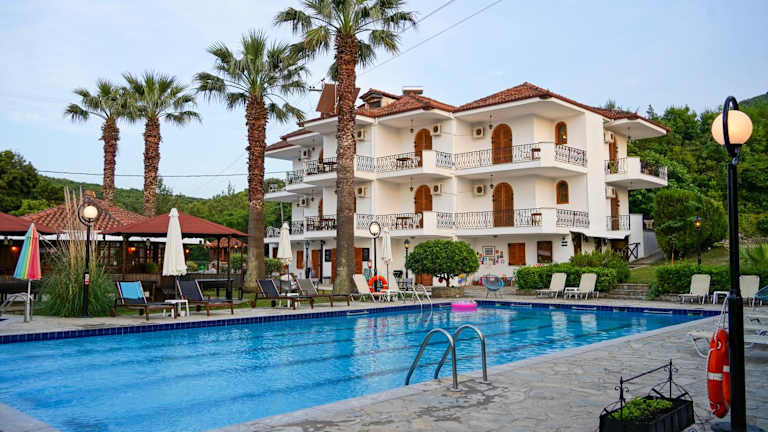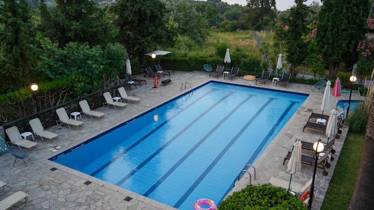 Das IRIDA Rooms 'n' Pool bietet eine einladende Atmosphäre mit einem schönen Pool, einem Kinderbecken, einer Sonnenterrasse sowie einer Snackbar am Pool. Umgeben von einem Palmengarten, stellt die Unterkunft eine ideale Ferienoase dar. Die Zimmer verfügen über Zugang zu einem Balkon oder einer Terrasse und bieten einen Blick auf den Pool, den Garten oder die Burg von Platamonas. Die Rezeption ermöglicht einen unkomplizierten Check-in und Check-out.