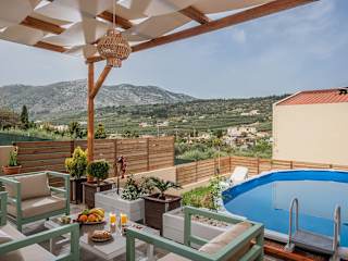 Iris Villas Complex bietet klimatisierte Übernachtungsmöglichkeiten mit einer Veranda/Pati und kostenlosem Wifi. Die Villa umfasst 6 Schlafzimmer, ein Wohnzimmer sowie eine gut ausgestattete Küche mit Kühlschrank und Geschirrspüler. Zudem verfügt die Unterkunft über einen eigenen Pool und einen Garten.