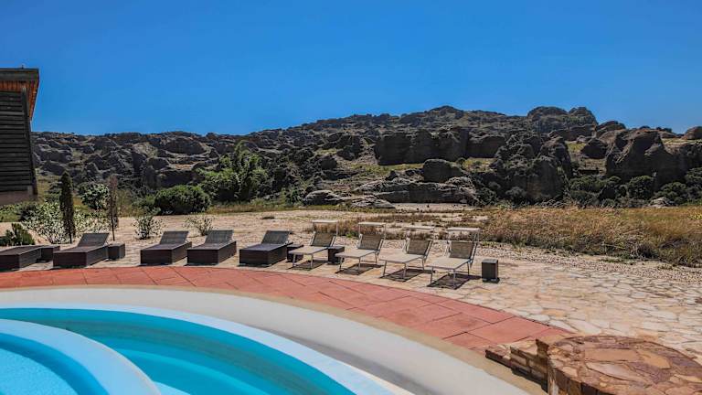 Die Isalo Rock Lodge liegt in den Sandstone Mountains und bietet einen spektakulären Blick auf den Nationalpark Isalo. Die Lodge befindet sich in der Nähe von Ranohira und ist mit einem Allradfahrzeug in etwa 3 Stunden vom Flughafen Toliara aus erreichbar. In der Umgebung gibt es viele Möglichkeiten für Aktivitäten wie Radfahren und Wandern.