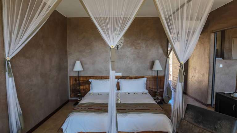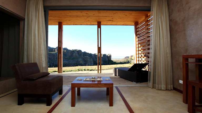 Die Zimmer in der Isalo Rock Lodge sind geschmackvoll eingerichtet und verfügen über Annehmlichkeiten wie Tee- und Kaffeezubehör, Klimaanlage, bequeme Sessel und Tische sowie private Badezimmer mit Badewanne und Dusche. Die Superior Zimmer bieten 24-Stunden-Strom für zusätzlichen Komfort.