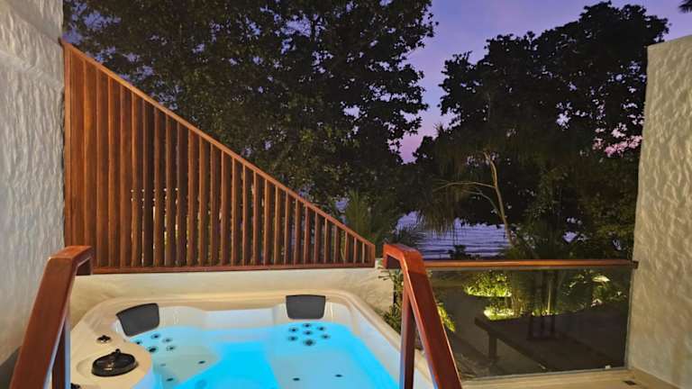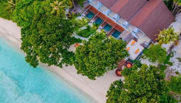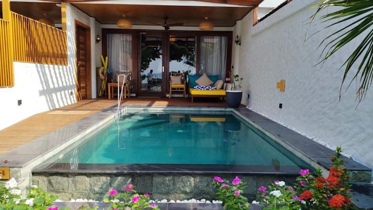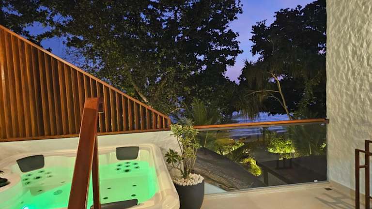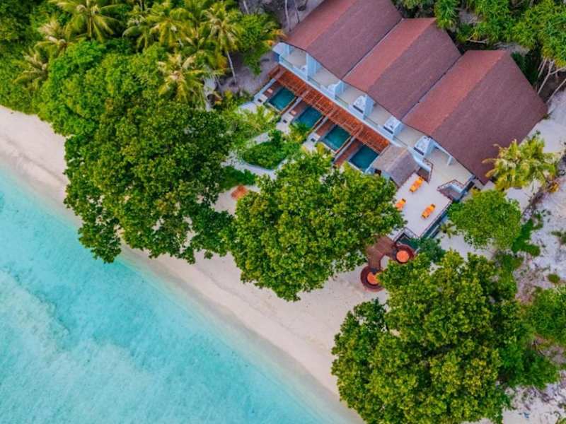 Island Luxury Retreat - Maalhos bietet Übernachtungsmöglichkeiten mit Blick auf den Strand. Die Unterkunft besticht durch ihren eigenen Strandbereich, einen Garten sowie eine Terrasse. Die Ausstattung umfasst kostenloses Wifi in der ganzen Unterkunft, einen Whirlpool und ein Karaoke.