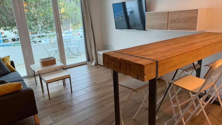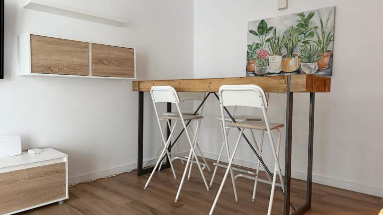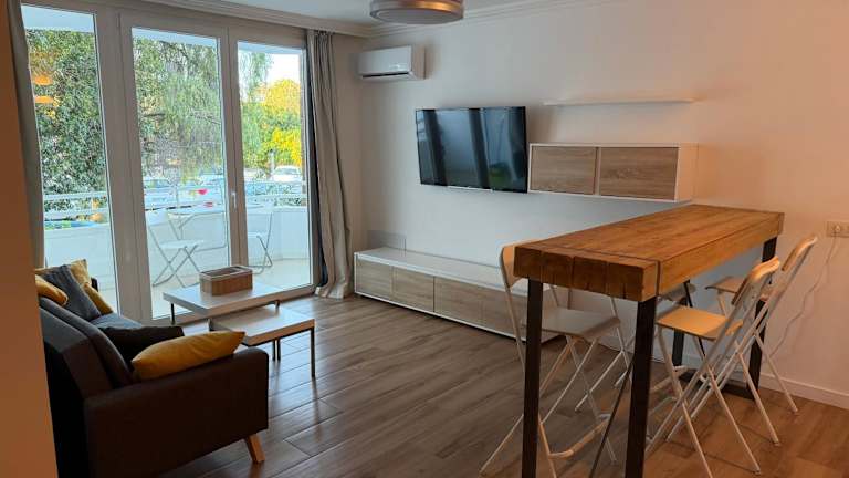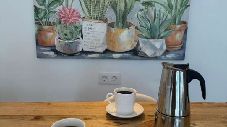Die Ferienwohnung ist mit einer Klimaanlage ausgestattet und bietet einen privaten Balkon sowie eine voll ausgestattete Küchenzeile mit Kühlschrank und Kaffeemaschine. Das Badezimmer ist mit einer Dusche und kostenlosen Pflegeprodukten eingerichtet. Handtücher und Bettwäsche stehen den Gästen zur Verfügung.