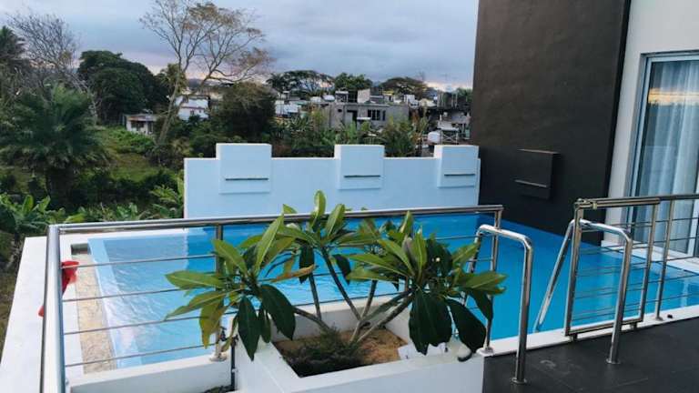 Die ISLAND RESIDENCE Plaisance liegt in Plaine Magnien auf Mauritius, etwa 10 km vom Busbahnhof Mahebourg entfernt. Die Unterkunft bietet einen wunderschönen Poolblick und ist von einer Terrasse und einem Garten umgeben. In der Nähe gibt es kostenfreie Privatparkplätze. Die Villa befindet sich in einer ruhigen Gegend und bietet eine entspannte Atmosphäre für Ihren Aufenthalt.