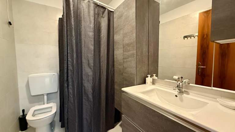 Die Ferienwohnung bietet zwei separate Schlafzimmer, ein gemütliches Wohnzimmer und eine komplett eingerichtete Küche. Das Badezimmer sorgt für zusätzliche Bequemlichkeit. Die Ausstattung umfasst zudem eine Terrasse, um die frische Luft zu geniessen.