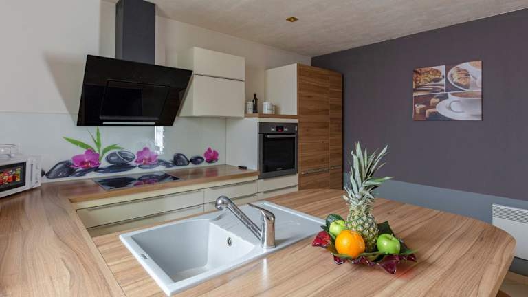 Das Ferienhaus besteht aus einem Schlafzimmer, einem Wohnzimmer und einer voll ausgestatteten Küche, die mit einem Kühlschrank und einer Kaffeemaschine ausgestattet ist. Zudem gibt es ein Badezimmer mit einer Dusche und einem Whirlpool. Handtücher und Bettwäsche werden bereitgestellt.