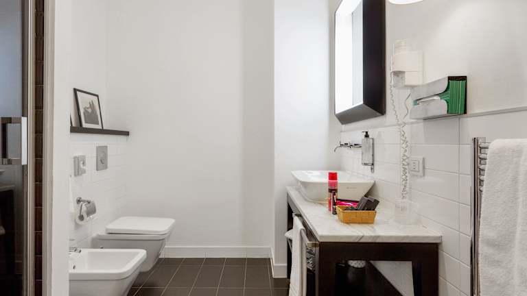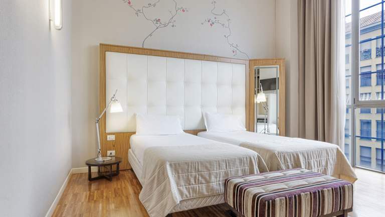 Die klimatisierten Zimmer sind elegant eingerichtet und verfügen über Parkett, einen Flachbild-Sat-TV sowie ein Doppelbett, Queensize- oder Kingsize-Bett. Einige Zimmer bieten eine eigene Terrasse oder Balkon mit Stadtblick. Zur Ausstattung gehören ein Safe, Minibar, Schreibtisch, Tee-/Kaffeemaschine sowie ein Telefon mit Direktwahl. Die Badezimmer sind mit Dusche, Badewanne, Haartrockner, Bademänteln, Kosmetikartikeln und Hausschuhen ausgestattet. Es gibt auch rollstuhlgerechte Zimmer.