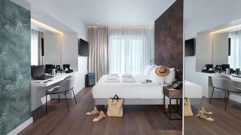 Die klimatisierten Zimmer sind ausgestattet mit einem Schreibtisch, einer Kaffeemaschine, einem Kühlschrank, einer Minibar, einem Safe, einem Flachbild-TV, einem Balkon und einem eigenen Badezimmer mit Dusche. Alle Zimmer bieten Stadtblick und sind mit Bettwäsche und Handtüchern ausgestattet.