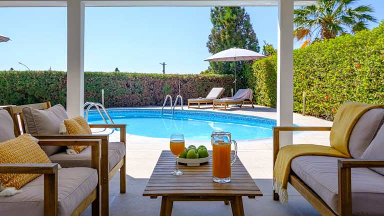 Die Ivy Blue Villa by Nomads bietet Übernachtungsmöglichkeiten mit einem eigenen Pool und einem Garten. Die Villa bietet einen Blick auf den Pool und verfügt über eine Veranda/Patioberfläche.