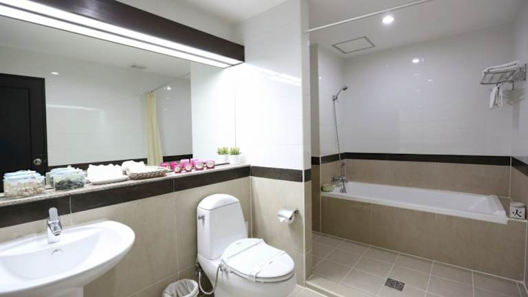 Die Unterkünfte im J-Town Serviced Apartments & Hotel bieten geräumige Wohn- und Essbereiche sowie eine voll ausgestattete Küche mit einem großen Kühlschrank, einer Mikrowelle und Kochutensilien. Jedes Zimmer verfügt außerdem über eine Waschmaschine und einen Safe, um Ihren Aufenthalt so bequem wie möglich zu gestalten. Die angeschlossenen Badezimmer sind mit einer Badewanne und einer Dusche ausgestattet.