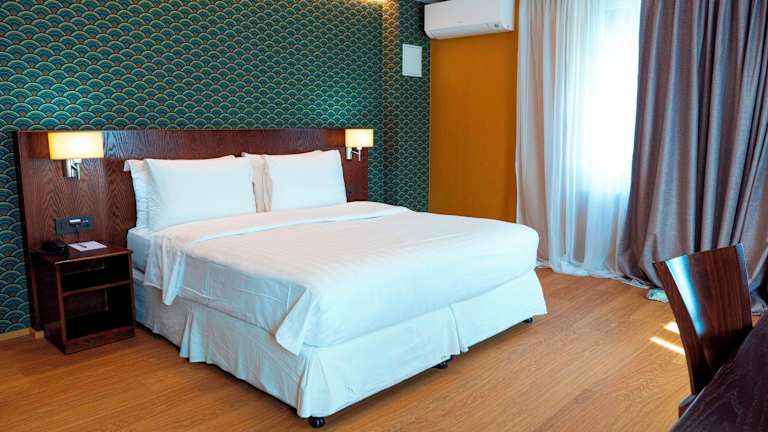 Die Zimmer sind mit Klimaanlage und Heizung ausgestattet, und die Gäste können den Stadtblick von einem Balkon oder einer Terrasse geniessen. Sie verfügen über Teppichboden, Doppelbett, Queensize-Bett, Kingsize-Bett oder Sofabett sowie ein separates Schlafzimmer. Zu den Annehmlichkeiten gehören ein Safe, eine Minibar (ohne Gebühr), ein Schreibtisch, ein TV-Gerät mit Satelliten-/Kabelempfang und kostenloses Wifi. Die Badezimmer sind mit Dusche, Badewanne, Haartrockner und Kosmetikartikeln ausgestattet. Familien- und Nichtraucherzimmer stehen ebenfalls zur Verfügung.