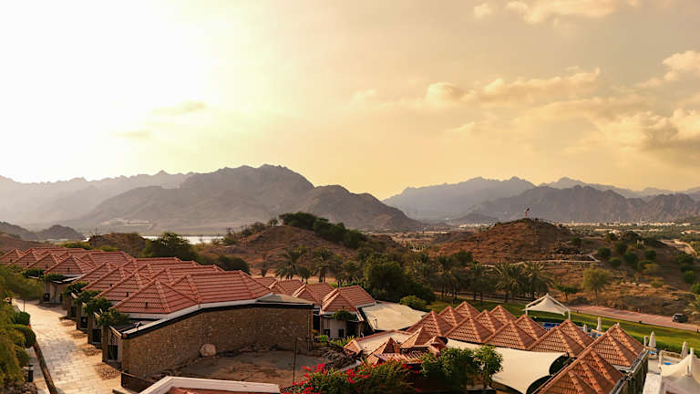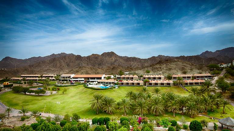 Auf einem knapp 33 Hektar großen Gartenareal, umgeben von den mächtigen Bergen des Hajar Gebirges und wilder Natur, ist dieses 4,5 Sterne Hideaway in Dubai der ideale Ort für Freizeit-, Geschäfts- und Incentive-Aufenthalte. Das Resort gehört zur JA Jebel Ali Hotelgruppe mit 4 und 5 Sterne Hotels in Dubai.