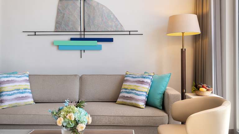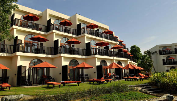 JA Palm Tree Court Dieses außergewöhnliche und familienfreundliche Strandresort ist Teil des mehrfach ausgezeichneten JA Jebel Ali Golf Resorts. Nur wenige Schritte vom arabischen Golf entfernt, bietet dieses Resort 208 großzügige Junior-, 1- und 2-Zimmer Suiten mit privatem Balkon oder Terrassen die einem wunderschönen Blick auf die kunstvoll angelegten Gärten des Resorts freigeben. Zusätzlich zu dem 800 Meter langen und palmenumsäumten Privatstrand offeriert das Resort auch noch 4 Swimmingpools und ein eigenes Spa sowie 15 Restaurants & Bars, ausgezeichnete Sport- und Freizeiteinrichtungen und 3 Kinderclubs, die nur darauf warten entdeckt zu werden.