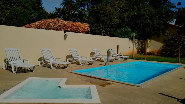 Entdecken Sie das JACARANDÁ CHALÉS em SÃO JOSÉ DA SERRA MG in Jaboticatubas und genießen Sie einen erholsamen Aufenthalt inmitten der Natur. Mit einem Restaurant, Zimmerservice, einer Bar und kostenfreiem WLAN bietet die Unterkunft alles, was Sie für einen komfortablen Urlaub benötigen. Die geräumigen und gut ausgestatteten Unterkünfte verfügen über einen Balkon mit Stadtblick und ein eigenes Badezimmer. Beginnen Sie Ihren Tag mit einem köstlichen kontinentalen Frühstück und erkunden Sie die Umgebung bei Wanderungen und Radtouren. Der Nationalpark Cipó ist nur 35 km entfernt.