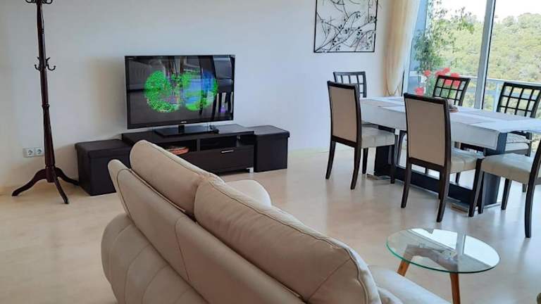 Die Ferienwohnung besteht aus 2 Schlafzimmern, einem Wohnzimmer und einer voll ausgestatteten Küche mit Kühlschrank und Kaffeemaschine. Ein Badezimmer mit Bidet und Dusche sowie die Bereitstellung von Handtüchern und Bettwäsche sind ebenfalls vorhanden. Die Unterkunft ist klimatisiert.