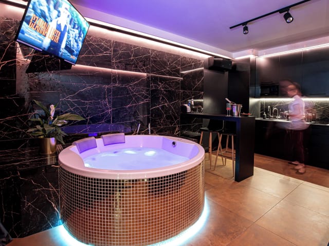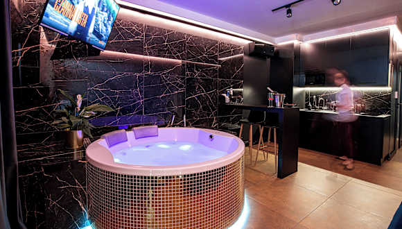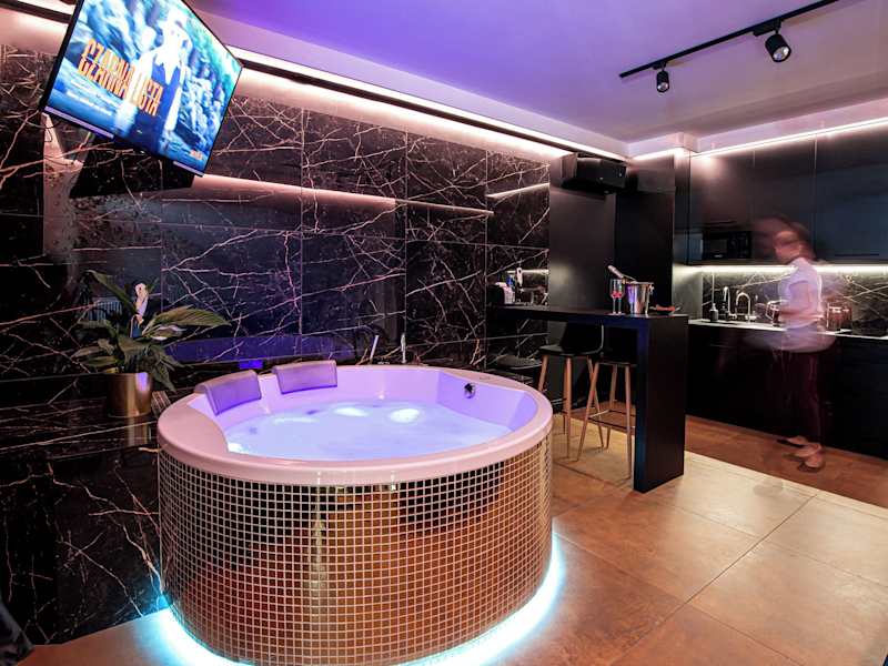 Das Jacuzzi Glass-House Central Station bietet Übernachtungsmöglichkeiten mit kostenlosem Wifi, Klimaanlage und Zugang zu einem Garten mit Terrasse. Die Unterkunft ist mit einem Whirlpool ausgestattet.