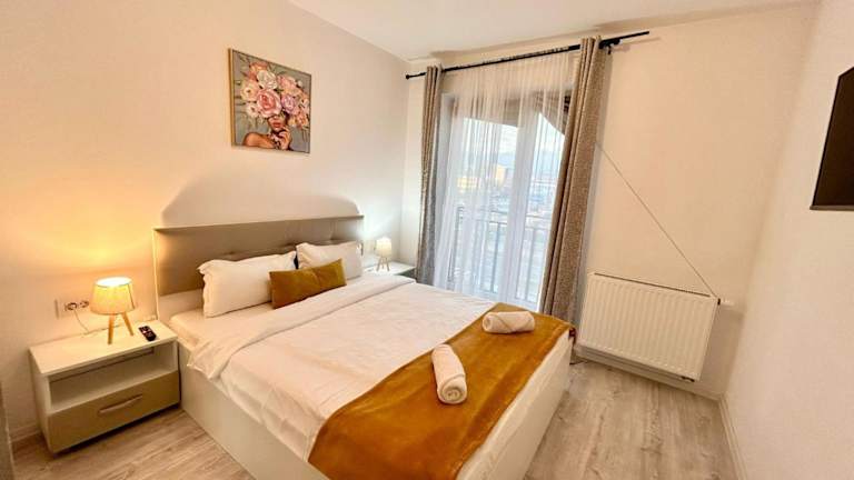 Die Unterkunft JAD Luxury Apartments Kasper liegt 3,6 km vom Paradisul Acvatic entfernt. Weitere wichtige Sehenswürdigkeiten in der Nähe sind der Rathausplatz in einer Distanz von 4,8 km und der Schwarze Turm, welcher sich 5,2 km entfernt befindet. Der nächstgelegene Flughafen ist der Internationale Flughafen Brașov-Ghimbav, der 12 km von der Unterkunft entfernt ist.