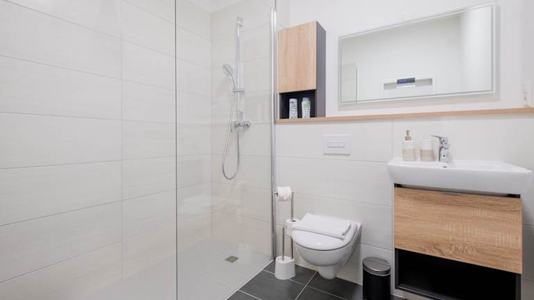 Die Zimmer verfügen über eine voll ausgestattete Küche mit Kühlschrank, ein eigenes Badezimmer mit Dusche und kostenlosen Pflegeprodukten. Einige Wohneinheiten bieten einen Satelliten Flachbild-TV. Die Unterkunft garantiert Bequemlichkeit durch die Bereitstellung von Bettwäsche und Handtüchern, die nach den Richtlinien der örtlichen Behörden gewaschen werden.