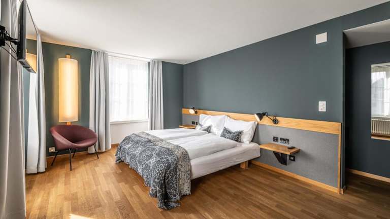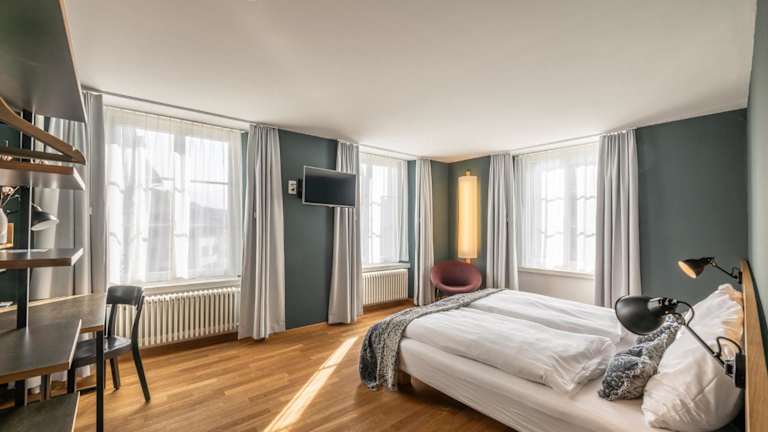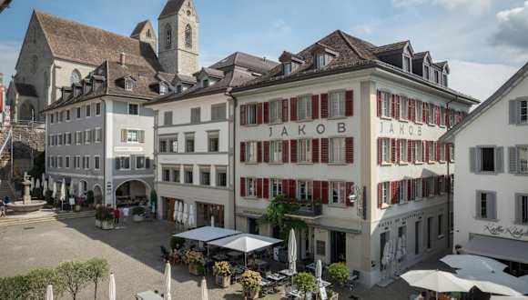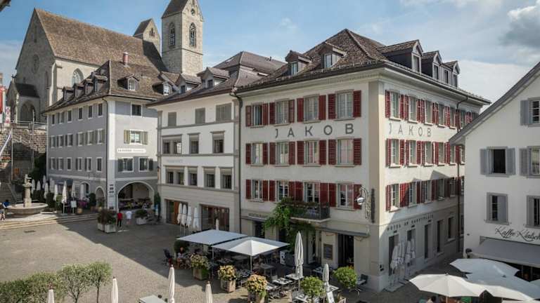 Das Jakob Hotel befindet sich in der autofreien Altstadt von Rapperswil, nur 2 Gehminuten vom Bahnhof entfernt. Die Schiffsanlegestelle am Zürichsee liegt lediglich 200 m entfernt.