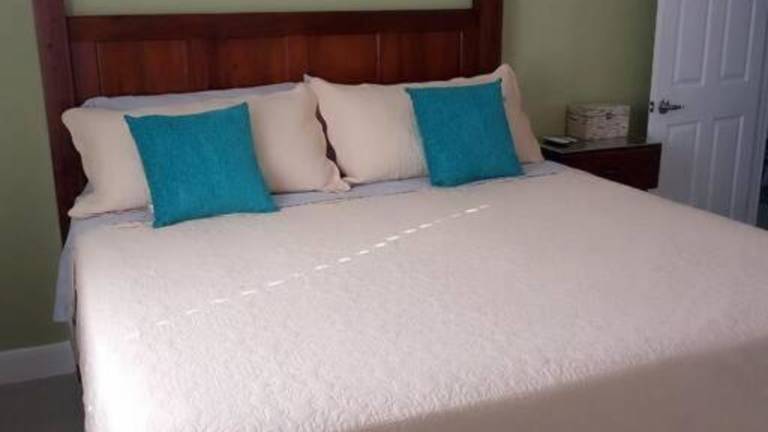 Die Villa ist klimatisiert und umfasst 3 Schlafzimmer, ein Wohnzimmer sowie eine voll ausgestattete Küche mit Kühlschrank und Wasserkocher. Es gibt 2 Badezimmer mit Dusche und kostenlosen Pflegeprodukten. Handtücher und Bettwäsche werden bereitgestellt.