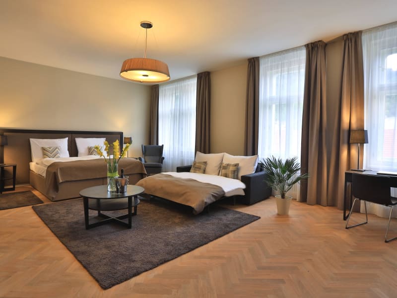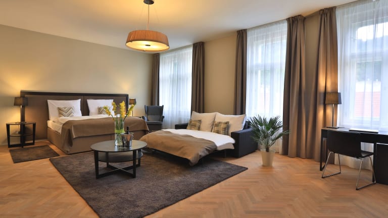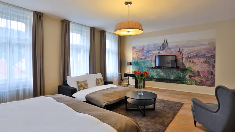 Die Zimmer im James Hotel & Apartments sind geräumig und verfügen über ein Kingsize-Bett sowie ein eigenes Bad. Alle Zimmer blicken auf die malerische Prager Kleinseite und den Hügel Petřín. Für Familien stehen unterschiedliche Optionen zur Verfügung, darunter Zustellbetten für Kinder. Ein später Check-in ist auf Anfrage möglich und einige Zimmer bieten die Möglichkeit, einen Balkon zu nutzen.